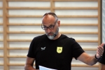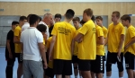 A visszajátszók nélkül játszotta U22-es csapatunk az első edzőmeccsét. A komáromiak voltak az ellenfelek és végig vezetve, az utolsó pecekben kicsit könnyelműsködve győztek a mieink. Komlón 3x30 perces edzőmeccset játszottak a György tanítványok. Teljes kerettel utaztunk a bányászvárosba és a hazaiak is széles kerettel készültek az összemérésre. Így a vezetőedzők 3x30 perces játékban egyeztek ki, hogy mindenki kellő terhelést tudjon kapni. Az első meccshez képest jó iramú összecsapás hasznosan szolgálta mindkét csapat felkészülését. ![]() Sport36-Komló – Balatonfüredi KSE 22:27 (8-15) Komló 150 néző V: Kovács T., Mándi B. Komló: Granic – Varga Sz. 2, Zobec 5/1, Jóga 2, Takács, Jerkovic 2, Hoffmann 1. Csere: Pásztor (k), Szöllősi 1, Grünfelder 1, Sunajko 2, Orbán, Metcz, Melnyicsuk 5, Vranac 1. Vezetőedző: Kilvinger Bálint A Balatonfüred legeredményesebb játékosai: Topic 5, Gostovic 4, Pedro 3, Szöllősi B. 3, Bóka 3. Hétméteresek: 2/1 illetve 3/2 Kiállítások: 4p illetve 8p Az utolsó 30 percet elölről számolták a csapatok, ekkor már jobbára a fiatalok jutottak szóhoz mindkét együttesben. Sport36-Komló – Balatonfüred 12:14 Sport 36-Komló: Szilágyi – Varga Sz. 2, Takács 2, Metcz, Szölősi, Beck 1, Apostolow 2, Bazsa 3/1, Melnyicsuk 2, Sunajko, Nagy Á. A Balatonfüred legeredményesebb játékosai: Szmetán 3, Ág 2, Szűcs 2. (Komló Facebook oldala tudósítása) Komlói barátaink augusztus 19-én viszonozzák a vendégjátékunkat. |